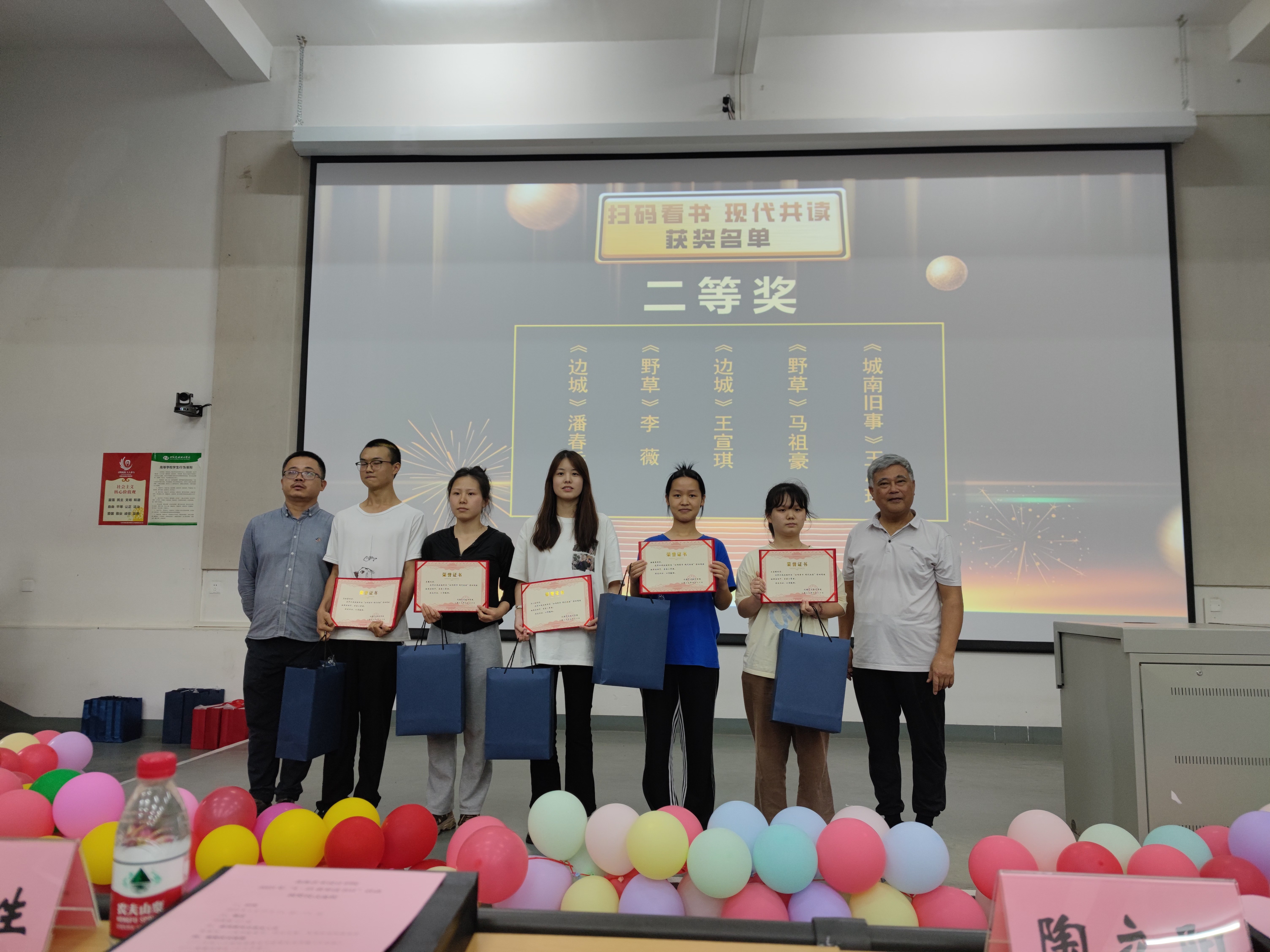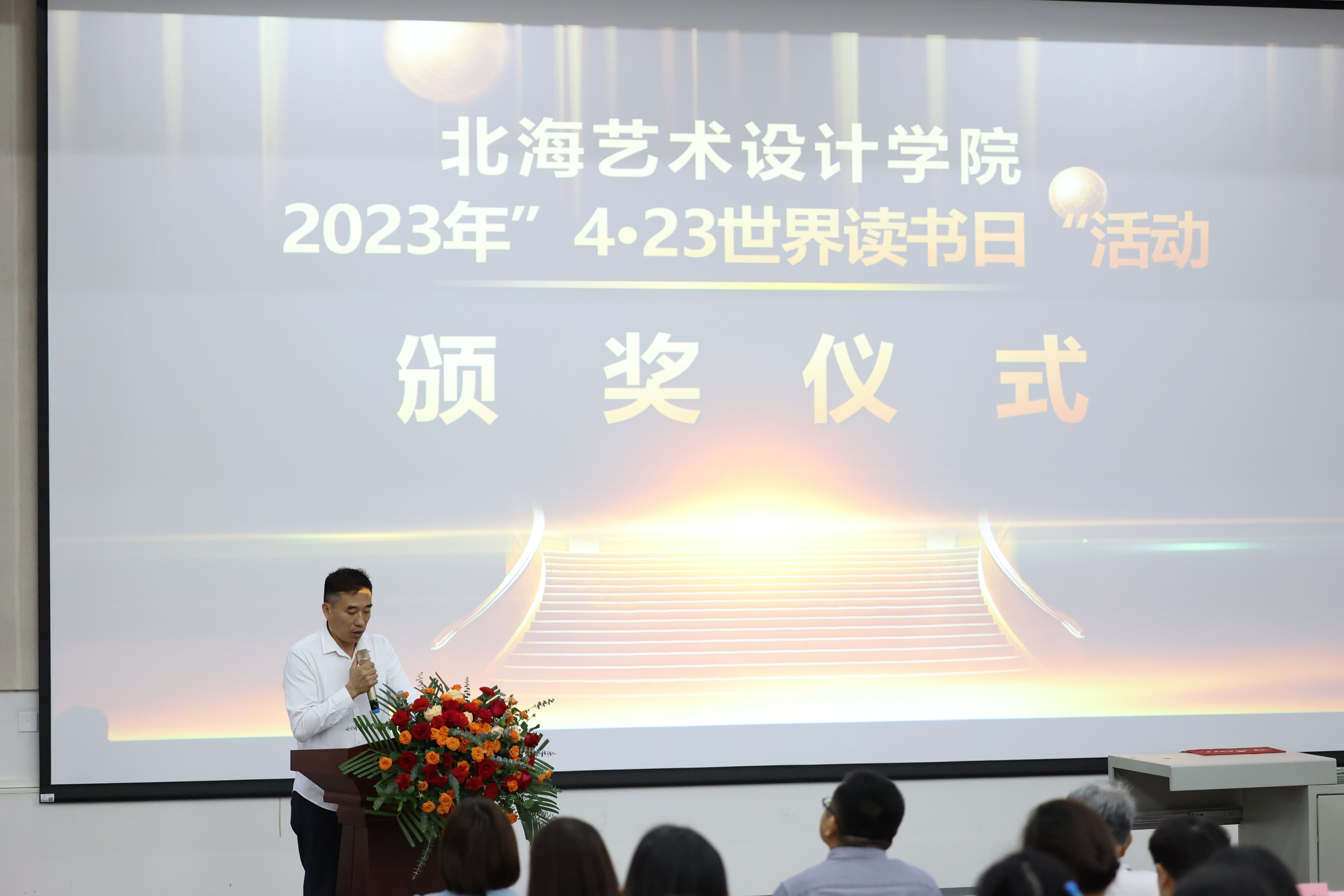 2023年4月27日下午,“阅读,与书同行;悦读,与书为友”,“4·23世界读书日”活动颁奖仪式在公德楼107隆重举行。颁奖仪式由图书馆主办、读者协会协办。我校副校长陶立阳、校团委书记唐良春、马克思主义学院院长姜献生、人文教育学院院长熊秀峰、美术学院院长龚为、动画与传媒学院院长孙永辉等领导应邀出席仪式。图书馆领导及馆员代表、获得表彰读者、读者协会和学生代表等100余人参加仪式。颁奖仪式由张伟、李小雨主持。