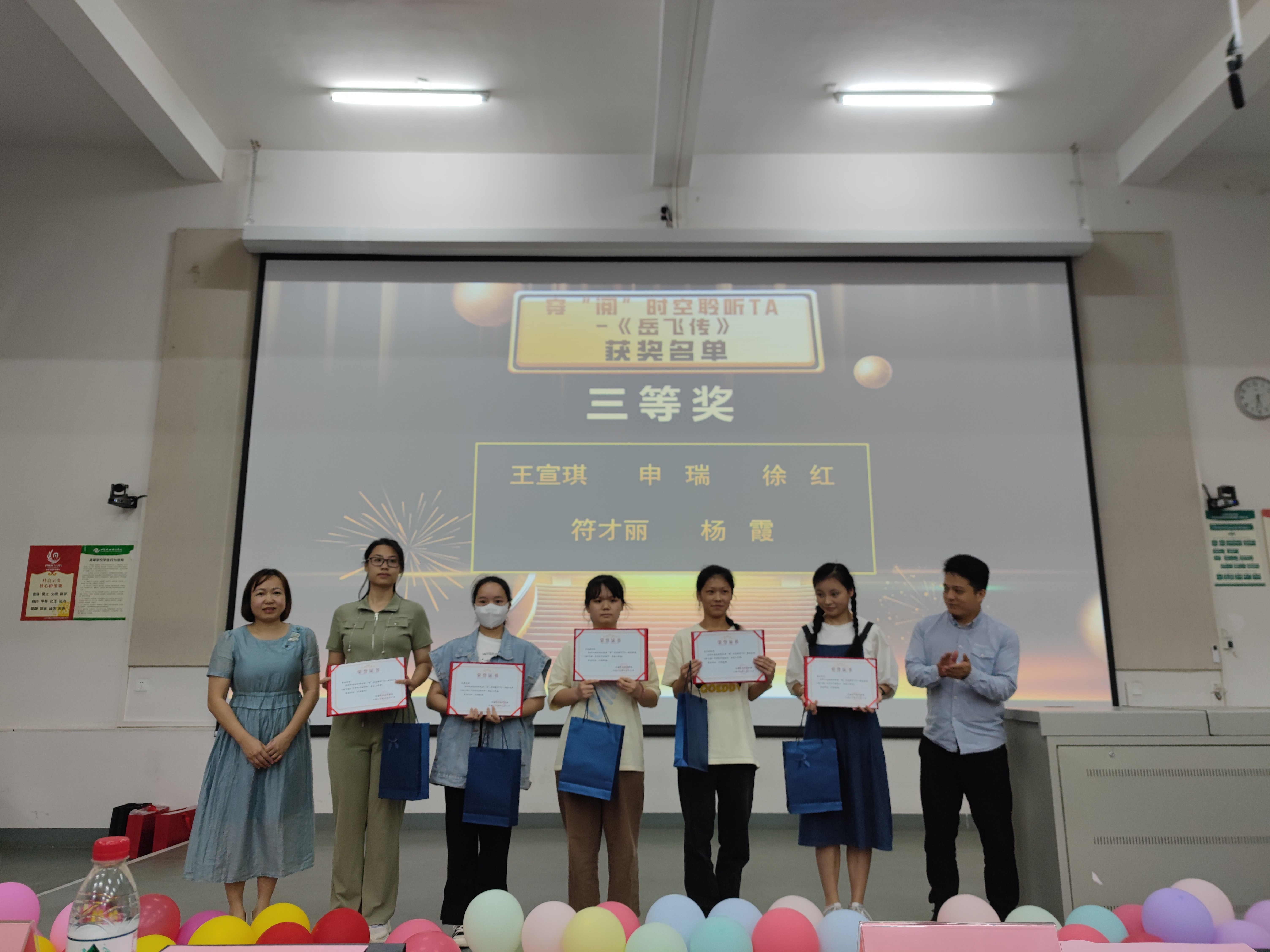 接下来的颁奖环节, 主持人宣布获得2022年度“阅读之星”(教师组、学生组)奖、《扫码看书 现代共读》活动奖项、《穿越时空聆听-精忠报国<岳飞传>听书打卡活动》活动奖项学生名单,获奖学生依次上台领奖。