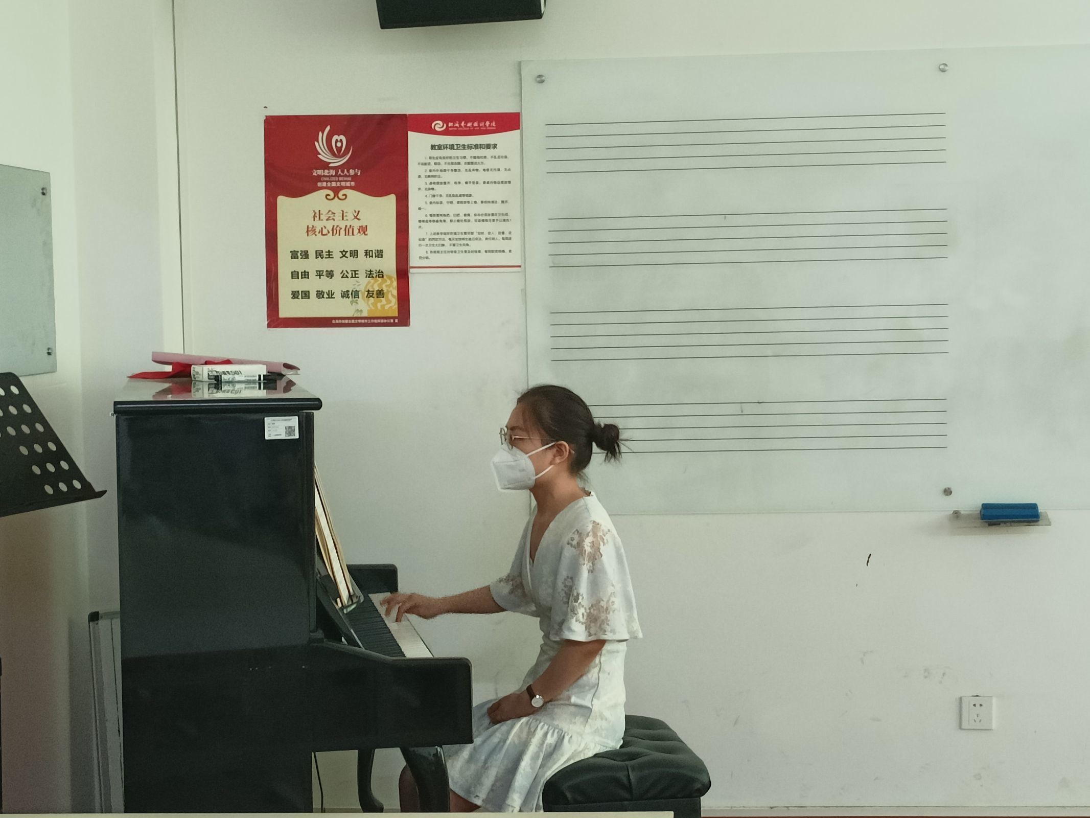 一号选手费静林老师言传身教的讲解了《钢琴技法(二)》。费静林老师用一曲活泼灵动的踏板前奏曲导入,生动形象的讲解弹奏不同音符节拍时左右手协调力度的转换与力的使用,费老师耐心细致的讲解,赢得了现场评委与教师的阵阵掌声。
