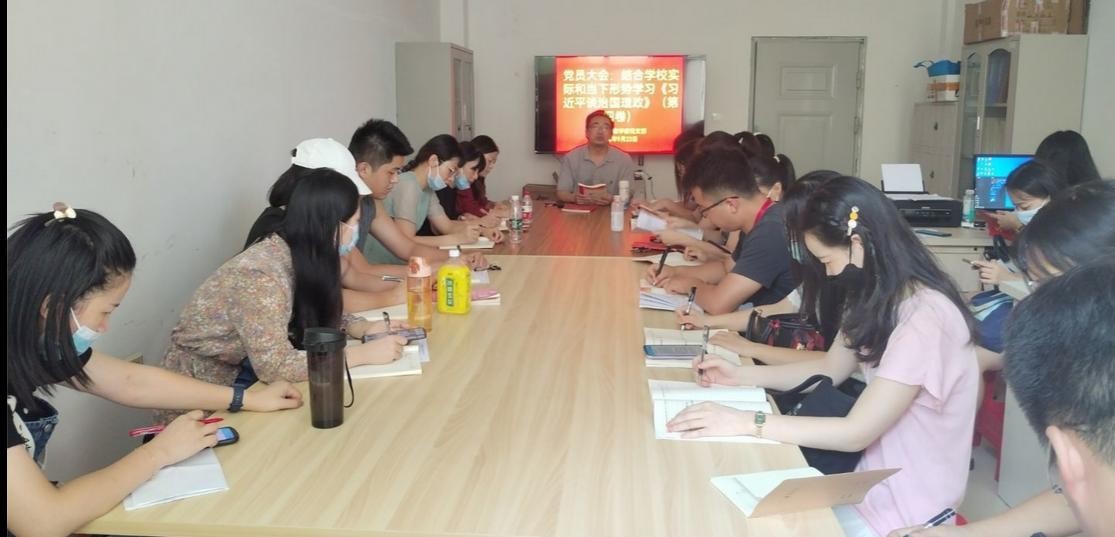 9月23日,公共教学部党支部召开党员大会,结合学校实际和当下形势学习《习近平谈治国理政》(第四卷)。周斌同志主持会议。