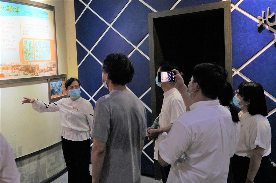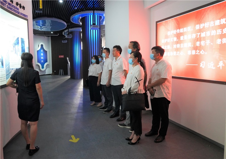 党委理论学习中心组首先走进北海老街红色旅游驿站。红色驿站主要通过展板展示、VR互动及电子设备等形式再现北海的历史。随后到老城历史文化馆,展馆重现老城昔日繁华景象,展示老城独具特色的历史遗存,深度挖掘老城的精神文化内涵,展示出一种缘海而生、伴海而生、中西合璧的滨海古城历史文化底蕴。