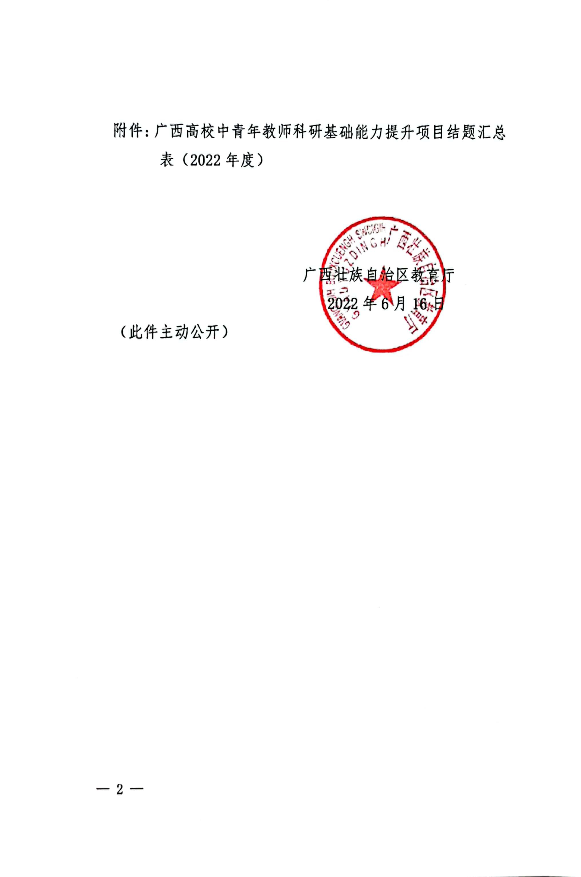 自治区教育厅关于同意2022年度广西高校中青年教师科研基础能力项目结题的通知