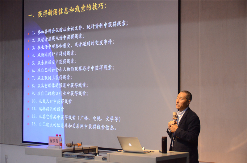 首先,龚为副院长对程铁良教授进行了简单介绍,并对程铁良教授的到来表示热烈欢迎。程铁良教授结合自身多年专业的工作经验,向我们解释了互联网媒体及相关专业的问题,阐述了新媒体与传统媒体的不同,并告诉同学们要多了解采访对象的内心状态,学会以个性化推送的思维方式进入互联网行业,向同学们分享了记者的得与失。