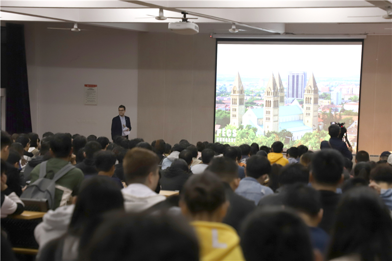 2018年12月19日晚19:30于我校西校区伦理楼107,匈牙利佩奇大学安德拉斯博士(Dr.Andras)为我校师生带来一场题为《RESEARCH COMPLETION DESIGN CONSTRUCTION 调研 完善 设计 结构--欧洲建筑师的设计方法》的精彩讲座,吸引广大师生前来聆听,该讲座由来自佩奇大学的金星博士翻译。