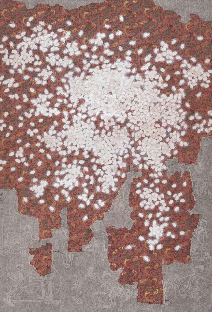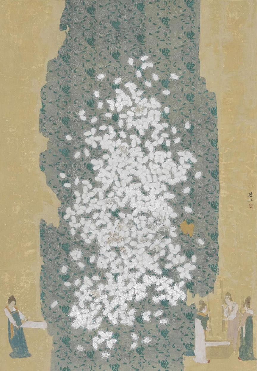 陈建江 《蚕诗桑歌》2014年 纸本矿物 138cm × 200cm