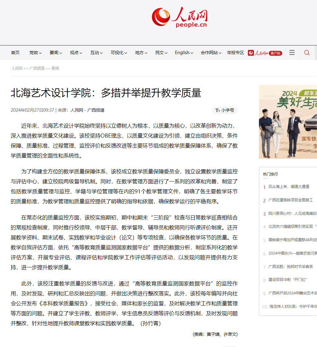 人民网:北海艺术设计学院多措并举提升教学质量