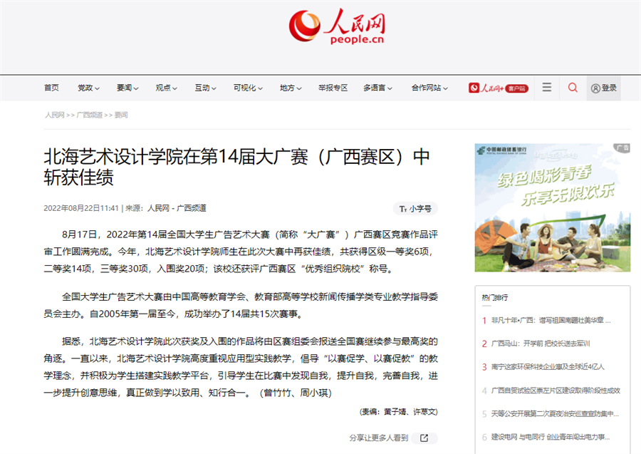人民网:北海艺术设计学院在第14届大广赛(广西赛区)中斩获佳绩