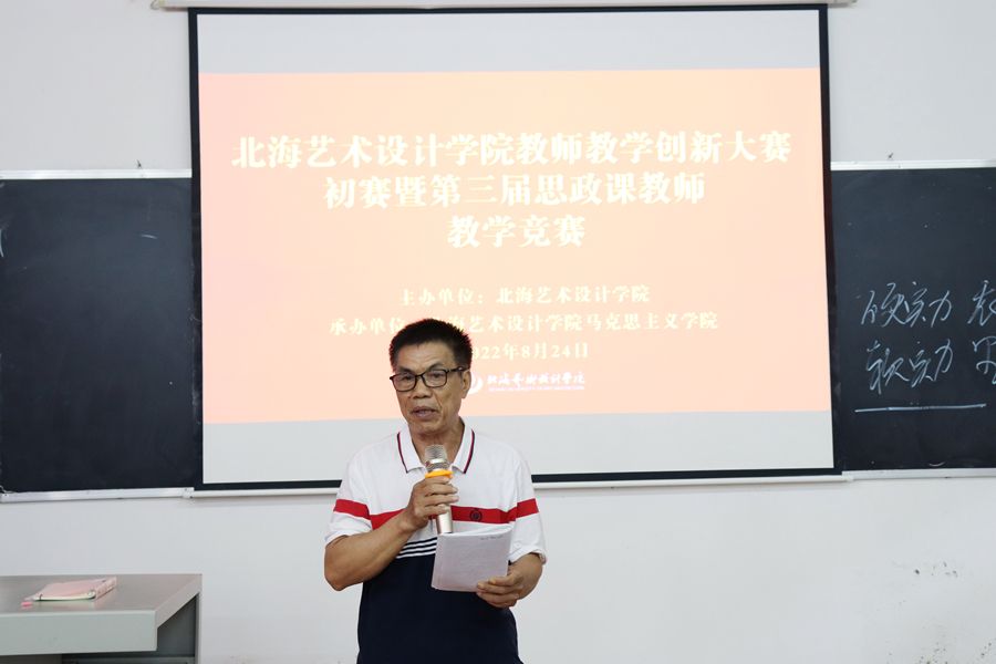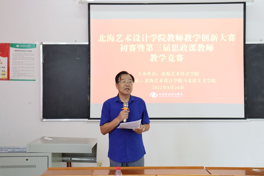 为深入学习贯彻习近平总书记关于教育的重要论述,落实立德树人根本任务,推动教学创新发展,进一步提升思政课教师教书育人能力,8月24日,北海艺术设计学院教师教学创新大赛马克思主义学院初赛暨第三届思政课教师教学竞赛在学校西校区伦理楼102顺利举办。副校长陶立阳出席活动,我院全体教师现场观摩了此次竞赛。