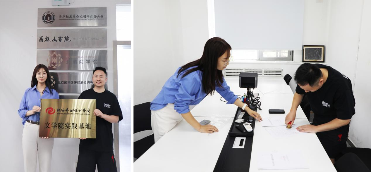 2025年6月11日,文学院与北京水木乡创文化有限公司、北京艺研宝艺术文化有限公司举行实践基地签约仪式,共建产学研一体化平台。出席本次签约仪式的有文学院教师代表严腾、北京水木乡创文化有限公司及北京艺研宝艺术文化有限公司负责人钟明明。