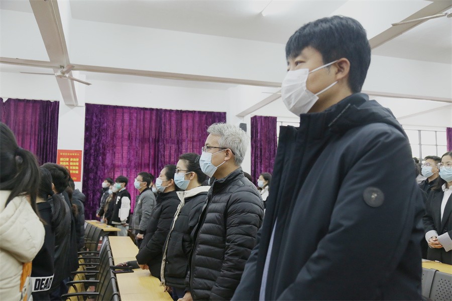 当天上午,伦理楼107现场庄严肃穆,10点整,江泽民同志追悼大会开始,全体人员向江泽民同志默哀3分钟,现场师生神情凝重、肃立默哀,深切悼念江泽民同志,寄托无限哀思,表达了对江泽民同志的崇高敬意和深切缅怀。默哀毕,全场高唱国歌后,认真聆听了习近平总书记所作的悼词,收听收看过程中,全体参会人员全程肃立,共同缅怀江泽民同志的光辉业绩、杰出理论贡献、优秀品格和高尚风范。