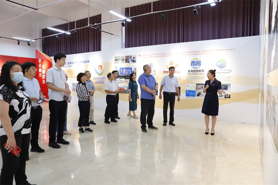 考察团一行表示,我校作为北海市唯一一所艺术类本科高校,师生创新创作能力强,艺术文化资源丰富。希望学校能够充分发挥高校优势,结合专业特色和地方需求,引导广大师生积极创作,为北海市旅游文化产业发展赋能添力,助推地方文化产业健康发展。(周小琪/摄)
