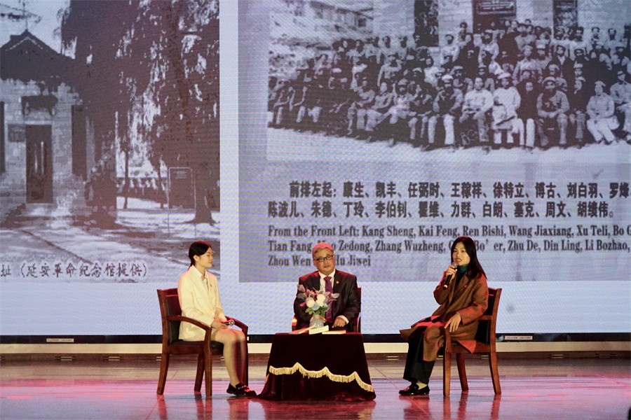 随后,由校合唱团带来的合唱《太行山上》余音绕梁,结合现场书法气势恢宏,台下观众情绪随着旋律此起彼伏;舞台剧《红绸》用艺术的方式讲述了中国共产党诞生的故事,现场热血激昂;舞蹈《风筝》《雨花石的等待》《离开雷锋的日子》《永不消逝的花》用不同的舞蹈风格,展现了永远跟党走的决心和对革命历史故事感悟;群体诗朗诵《沁园春·长沙/沁园春·雪》《为有牺牲多壮志》铿锵有力,用声音传递伟大革命思想;朗诵《毛主席的光辉照万代》体现了民族大团结,同心同向在学习伟人的光辉历程中不断前进。