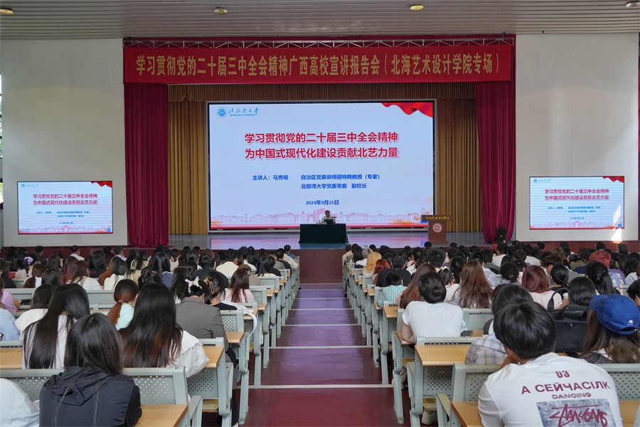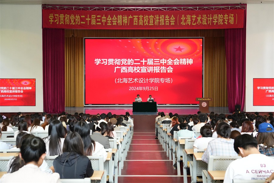 刘承初在主持报告会时指出,学习好贯彻好党的二十届三中全会精神,是当前和今后一个时期全党全国的一项重大政治任务。全校师生要以本次宣讲报告会为契机,深入学习贯彻党的二十届三中全会精神,以更高站位、更大力度、更实举措持续深化教育综合改革,为谱写中国式现代化广西篇章、实现中华民族伟大复兴贡献更多北艺力量。(周小琪、郭松/摄)