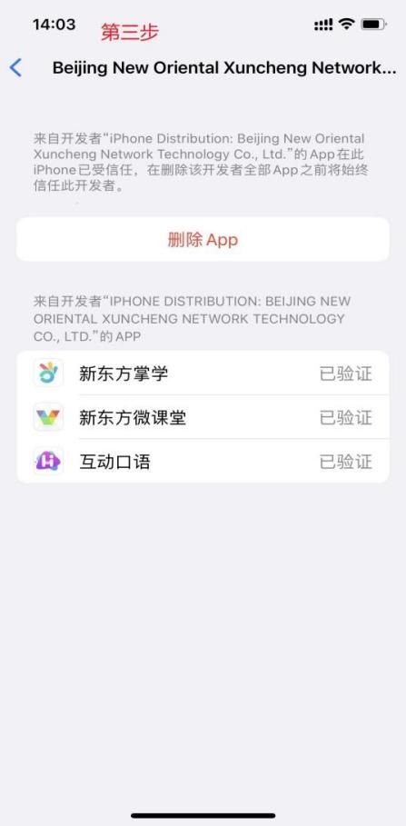 IOS系统下载app后不能打开,出现“未受信任的企业级开发者”,请根据下述步骤操作。