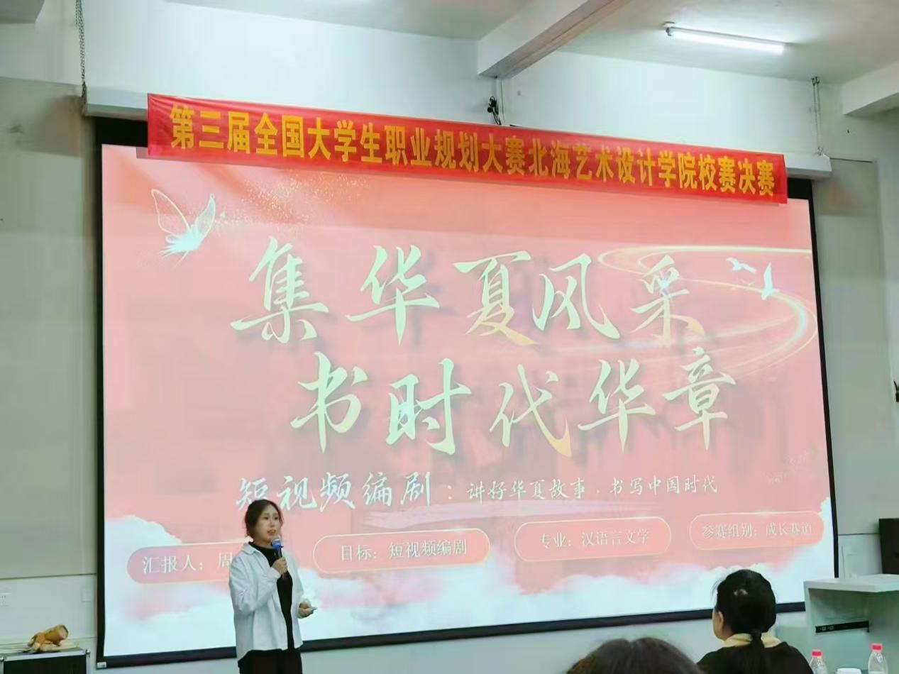 近日,第三届全国大学生职业规划大赛北海艺术设计学院校级选拔赛圆满落幕。文学院学子凭借清晰精准的职业定位、深厚扎实的专业素养与从容亮眼的现场表现,共荣获一等奖1项、二等奖2项、三等奖2项、优秀奖4项及入围奖4项,充分展现了文学院学子过硬的职业规划能力与全面的综合素养。