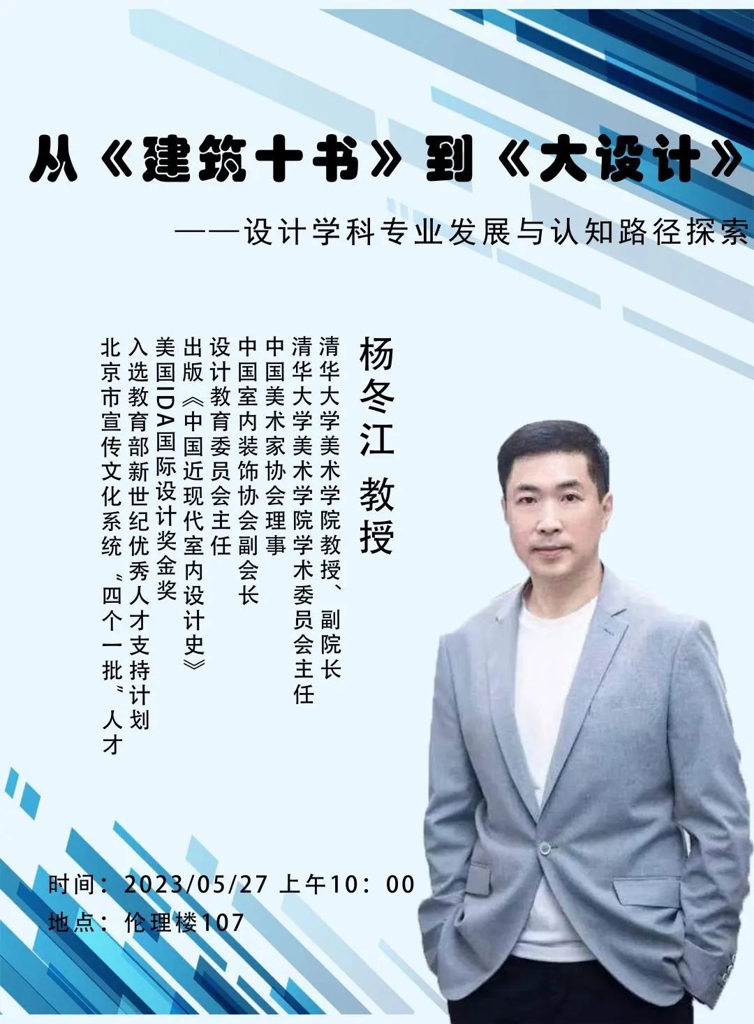 讲座预告|杨冬江《从〈建筑十书〉到〈大设计〉——设计学科专业发展与认知路径探究》