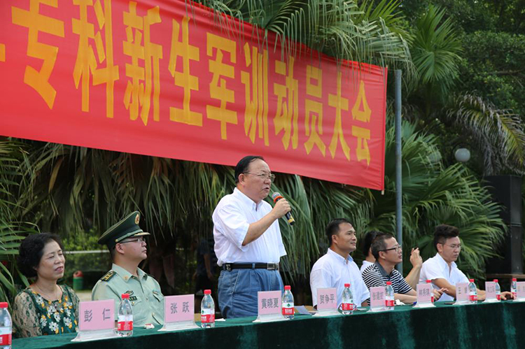 2016年9月12日,我院2016级专科新生在学院东校区操场举行了军训动员大会,会议由我院学工处副处长覃柳芳主持,学院党委书记贺争平、武警北海市边防支队机动大队副参谋长黄晓夏,及我院领导出席了本次动员大会。