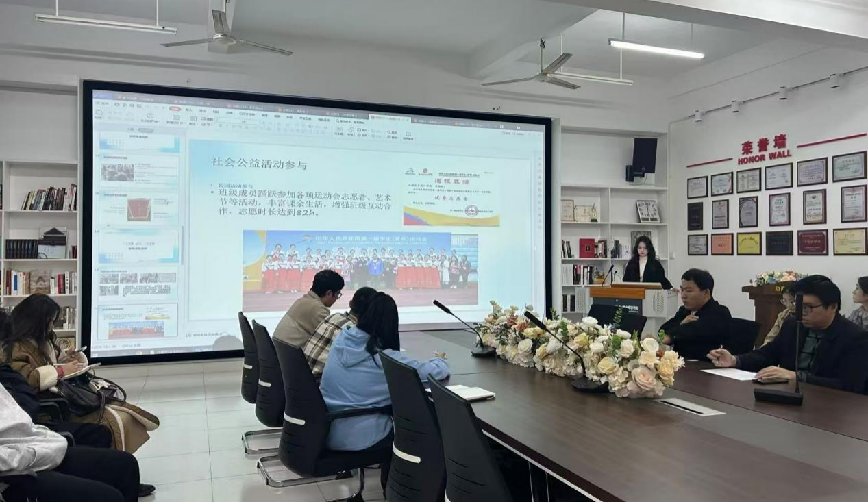 评审会现场气氛热烈,7个参评班级代表依次登台,通过PPT展示,全面汇报了班级的建设成果。从思想建设、课堂出勤率、专业成绩优良率等学风建设硬指标,到志愿服务时长、学科竞赛获奖情况等实践成果,各班级代表用详实的数据和生动的案例,充分展现了动画学子积极向上、团结奋进的精神风貌。评审小组结合现场表现及班级材料审核进行综合评分。