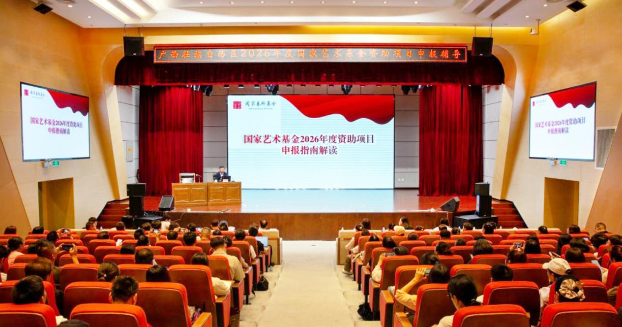 2025 年 5 月 16 日,我校参加由自治区文化和旅游厅主办,广西民族文化艺术研究院、广西图书馆承办的《2026 年度国家艺术基金资助项目申报辅导会》。