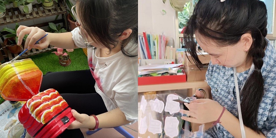2102班见习生主动参与幼儿园的环境创设