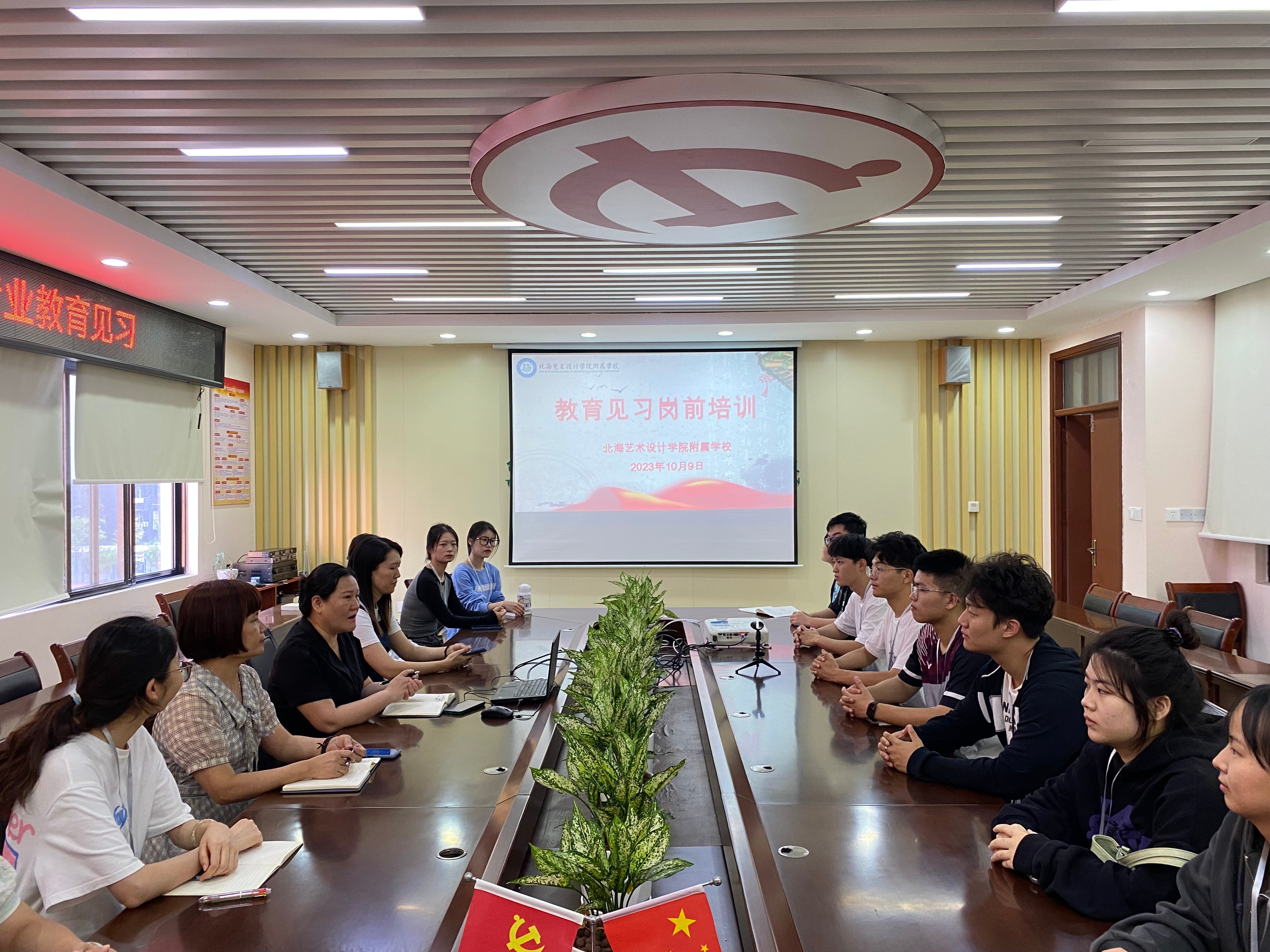 抵达北海艺术设计学院附属学校后,北艺附校校长包玉红和副校长陈春华为教育见习的学生开展了教育见习岗前培训,介绍北艺附校学生与班级的基本情况,同时也对教育见习的学生提出了教育见习期间的规范与要求。
