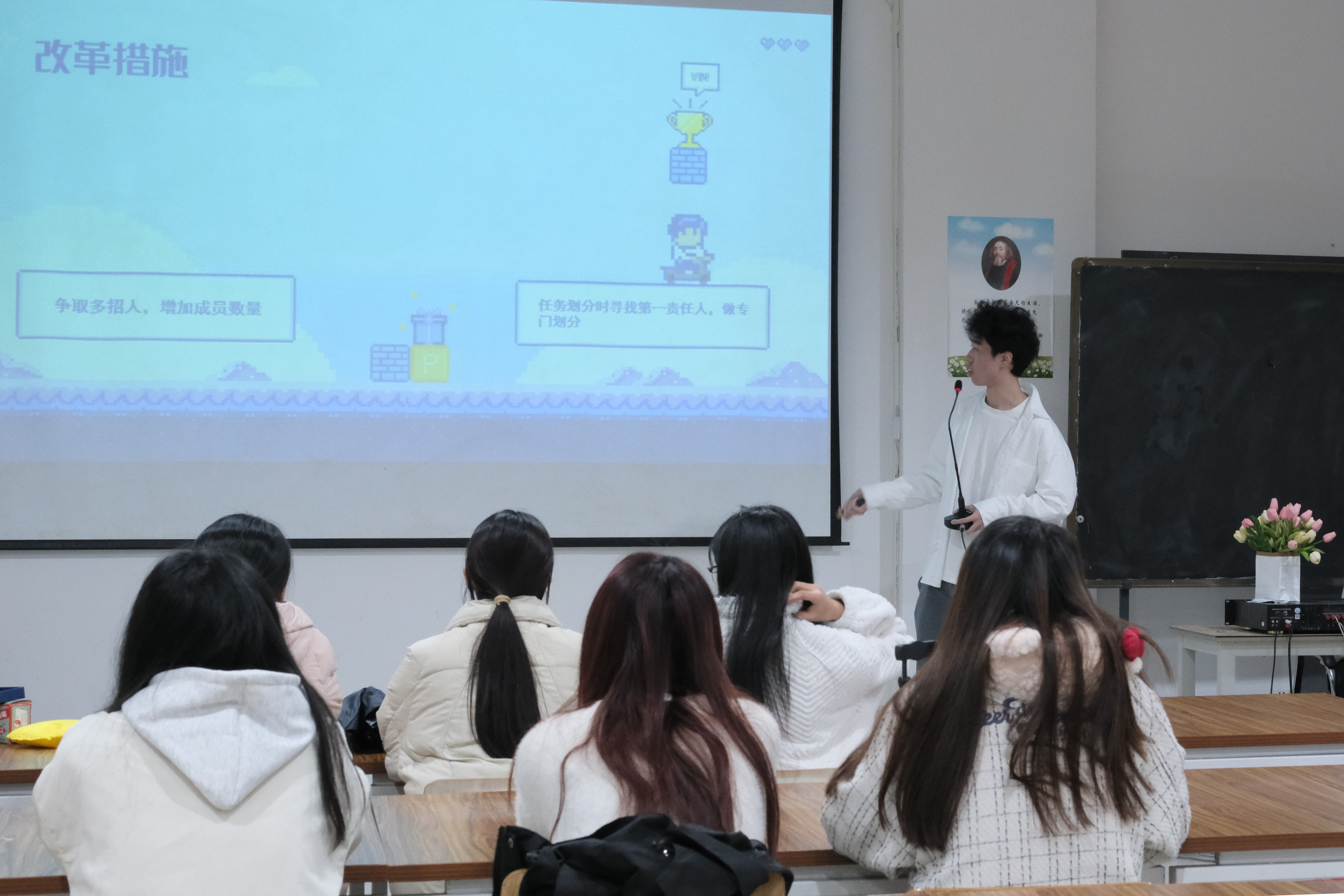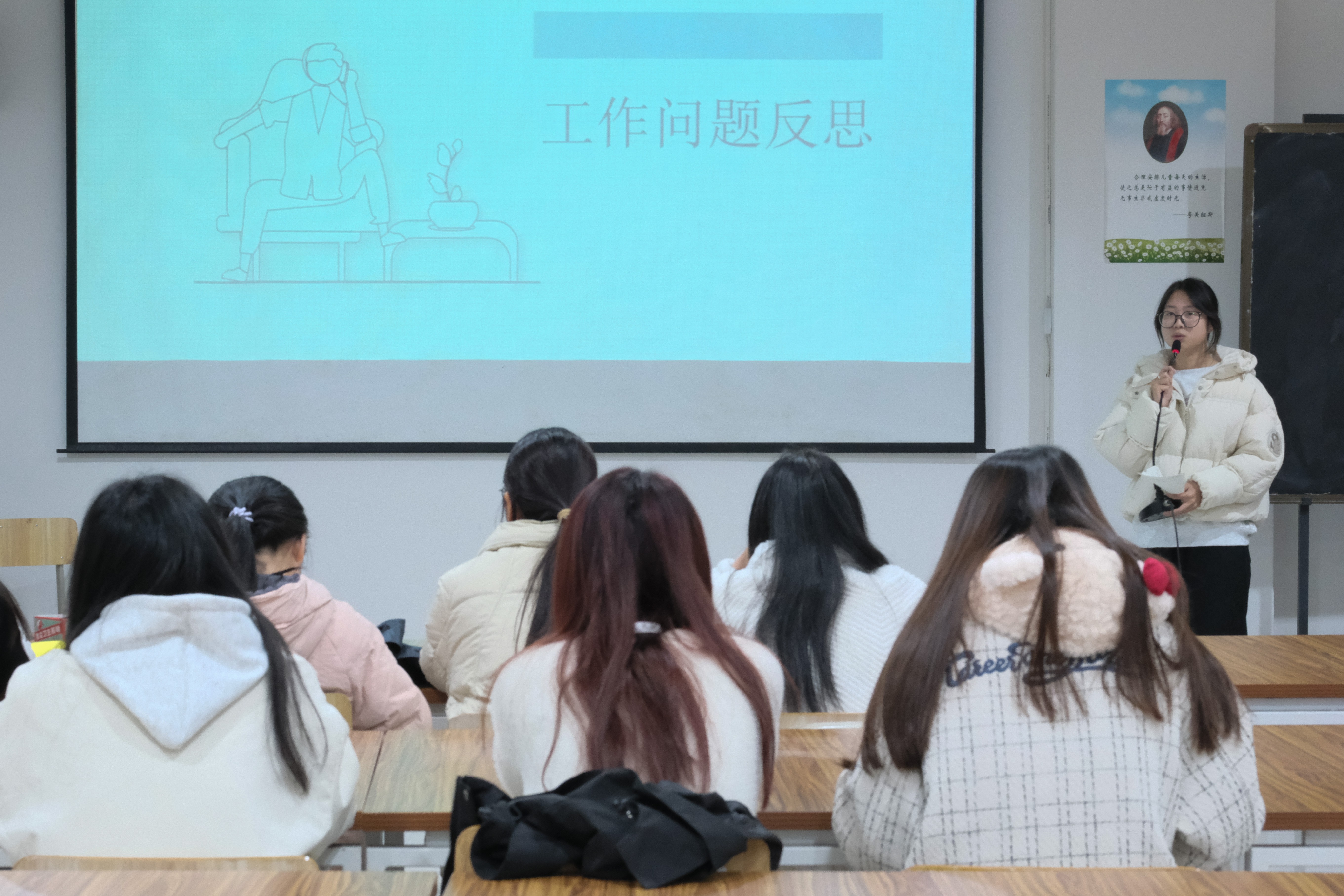 文体部部长马雨静在会上进行工作汇报