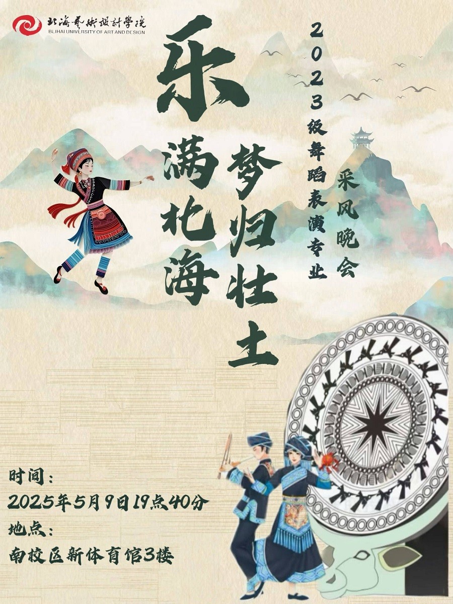以北海风情为底色,以壮乡文化为灵魂,以“乐满北海 梦归壮土”为主题,舞蹈学院2023级舞蹈表演专业学子将用肢体语言诠释自然之美、民族之魂,展现采风实践中对民族文化的深情致敬和传承之旅。