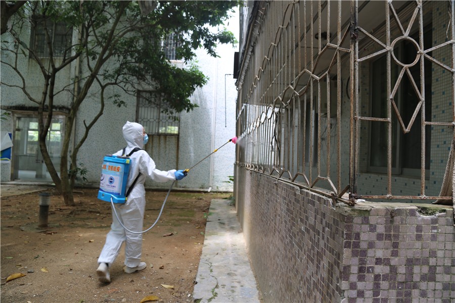 5月5日下午,学校根据《广西学校防控新冠肺炎疫情卫生清洁消毒指南》等文件的要求,对标对表开展第二次校园防疫消杀工作。严格遵照消杀工作流程、工作规范,学校总务处组织专员队伍对校园进行科学精准消杀。工作人员携带专业装备,使用有效氯浓度250㎎/L~500㎎/L的含氯消毒液,对学校东西校区的宿舍区、教学楼、图书馆、实训室、工作室、办公室、食堂、超市、厕所等场所进行全方位消杀,有力保障了我校师生复学复课的生命安全。