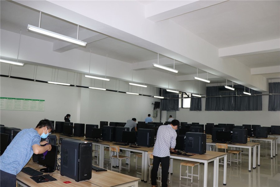 5月1日至2日,学校统筹安排各部门对照疫情防控卫生标准,对东西校区的教学楼、办公楼、宿舍区、图书馆、实训室、工作室、食堂、绿化区等公共区域开展卫生死角清洁工作,并对照防控要求规范教室桌椅摆放及室内防疫标识的张贴。经过全校教职工两天的努力,门窗、风扇、墙面、栏杆、地面擦拖干净,布置美观,物品摆放整齐,校园环境整洁一新。