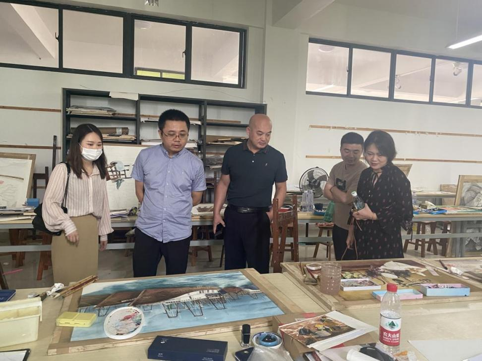 交流会过后,张教授在学院领导和相关任课教师的带领下来到绘画18级油画、国画、水彩的教室,观摩了18级学生的创作课程作业和课堂情况,并针对学生的作业给出了很多宝贵的建议、指导。