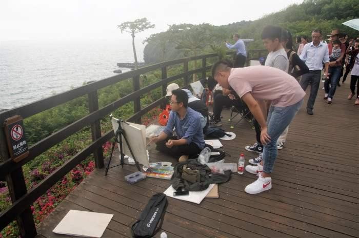 (火山口景区学生写生场景)