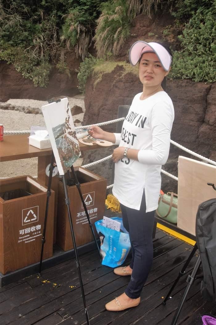 (火山口教师写生场景)