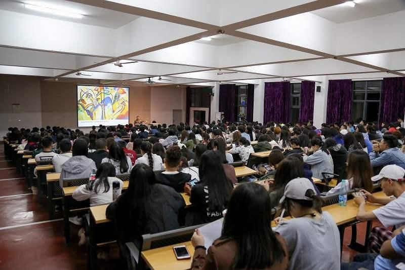 张敢教授通过介绍西方流派作家的作品中的色彩搭配、整体结构,以及作者对生活艺术的感受表达出来,向大家诠释了表现主义的美术思潮,为同学们提供了积累丰富的绘画底蕴;接着又讲述了立体艺术等抽象艺术形式主义的探索和超现实主义的幻想艺术,给人展现出不一样的表达方式。介绍过程中,张敢教授不时运用幽默的话语,引起同学们的一片欢笑声,使得本次讲座更为有趣。