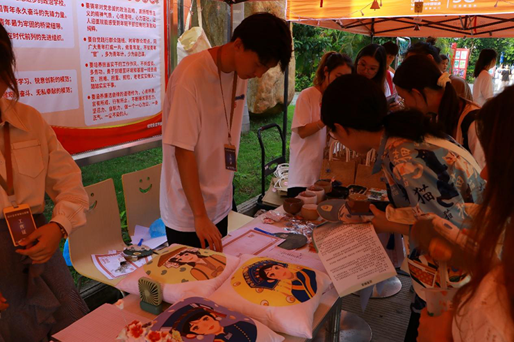 由人文教育学院分团委和设计艺术学院分团委共同举办的“艺”想“添”开主题活动于2022年5月27日圆满结束。此次活动为期两天,以“科技创新创业+以物换物+爱心捐赠”形式开展。活动划分为游戏专区、手工互动专区、爱心义卖专区和毕业捐赠专区等四个区域。为方便同学们了解活动分区,特别设置了咨询台。此次活动征集物资共计1138余件,活动所征集物资及收益将以学校名义赠予北海市内我校对点帮扶学校以及广西壮族自治区河池市共青团大化瑶族自治县委员会。
