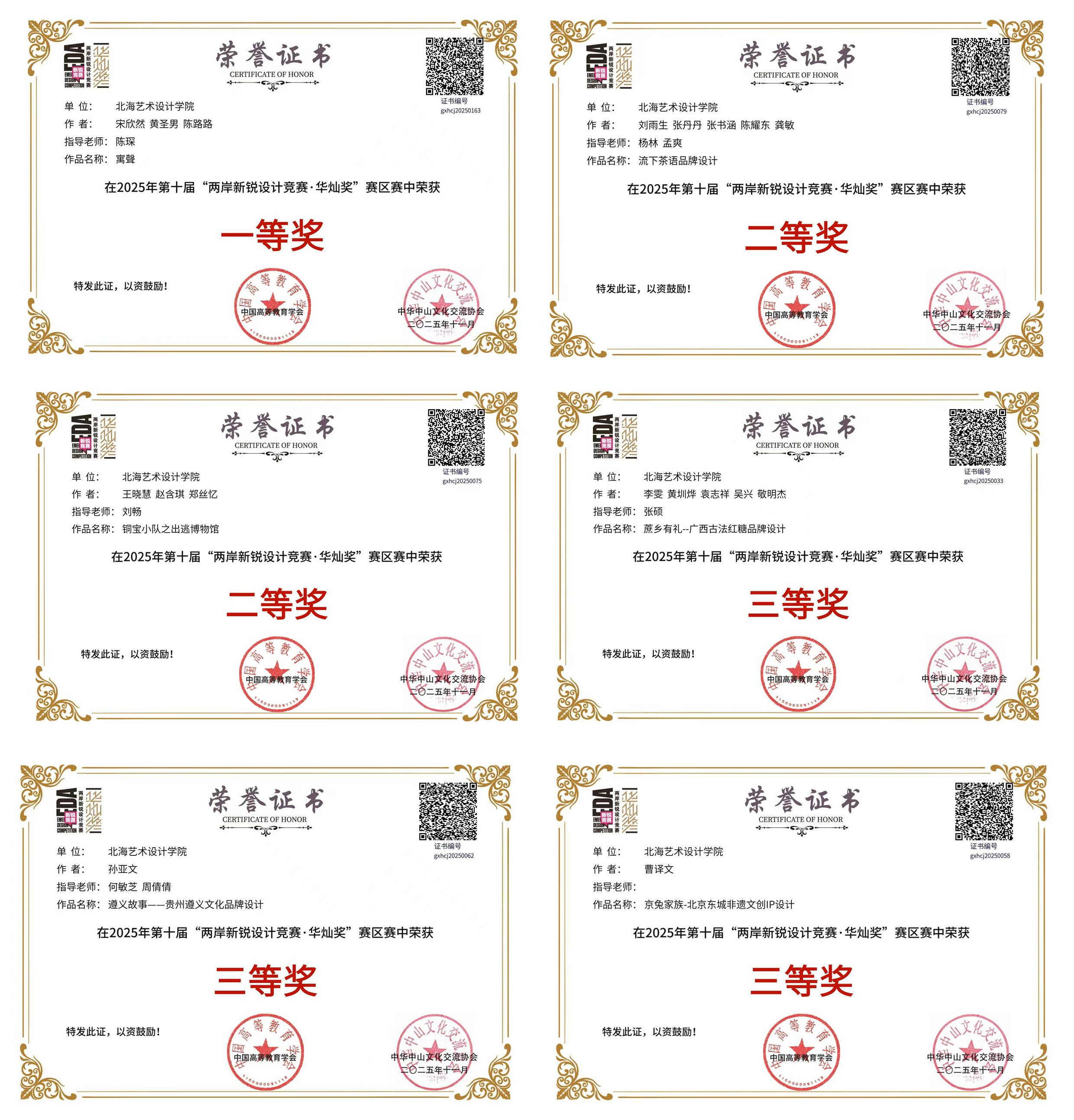 近日,第十届两岸新锐设计竞赛·华灿奖圆满落幕,设计艺术学院在此次竞赛中表现优异,共获国家级奖项3项,其中一等奖2项、二等奖1项;获省级奖项6项,其中一等奖1项、二等奖2项、三等奖3项。