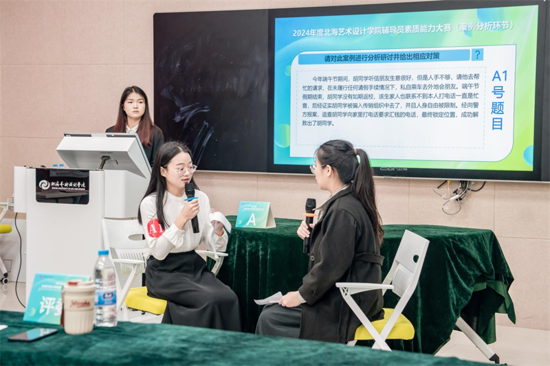 为全面贯彻落实全国高校思想政治工作会议和习近平总书记关于高校思想政治工作的系列重要论述精神,推动学生思想政治工作高质量发展,不断提升我校辅导员的理论水平、职业能力和专业素养,我校于2024年2月18日—3月15日举办了2024年度北海艺术设计学院辅导员素质能力大赛。本次比赛对标省赛赛制并结合学校具体工作实际,共设置基础知识测试、案例研讨、谈心谈话三个环节。第一轮基础知识测试结束后,共有12位选手成功进入案例研讨、谈心谈话环节。