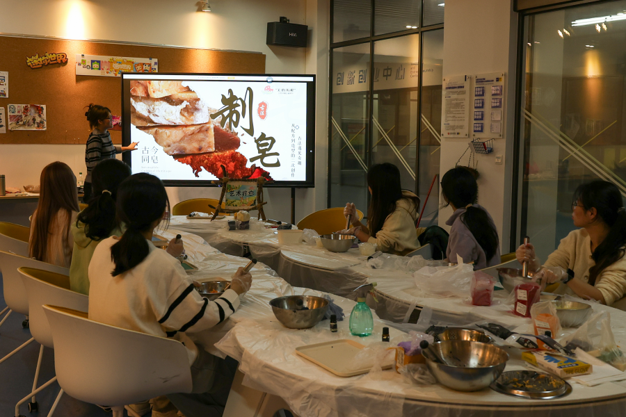“古今同皂”非遗古法制皂体验活动在西校区图书馆负一楼开展