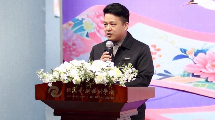 开幕式上,校团委书记唐良春在讲话中充分肯定了本届大赛的组织工作与核心立意,大赛为师生搭建了优质的创意交流平台,集中展现了参赛学子的设计巧思与创作热忱。参赛作品将北艺精神、北海风情与校训内涵融入丝巾设计,生动呈现了学子扎根文化、大胆创新的青春风采,对推动校园文化建设与美育工作具有重要意义。