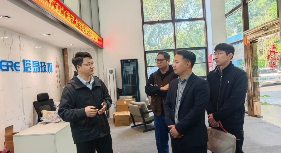 为进一步深化产教融合、校企合作,精准对接企业人才需求,优化专业人才培养方案,扎实推进学生实习就业工作,3月11日,造型艺术学院院长邓渠成,副院长胡毅、钟远诚及产品设计教师周劲志一行赴南宁市开展“访企拓岗促就业”专项调研工作,先后走访广西塔易信息技术有限公司、广西御城广告策划有限公司、广西美斯达工程机械设备有限公司,与企业负责人深度交流探讨,共探人才培养路径,共谋校企合作新篇。