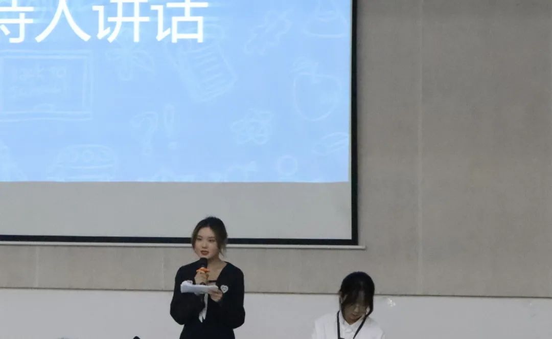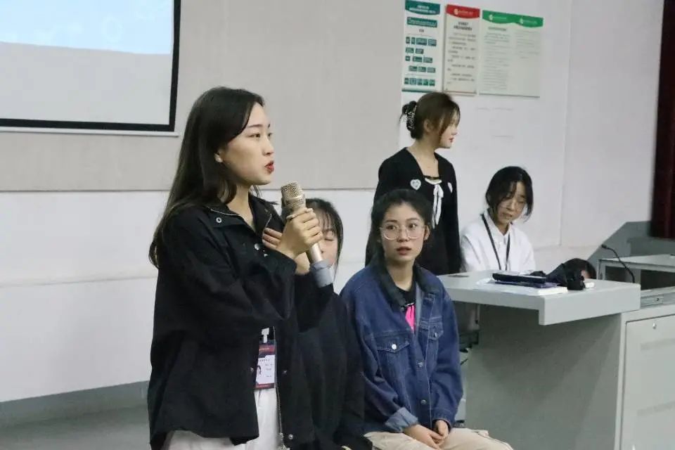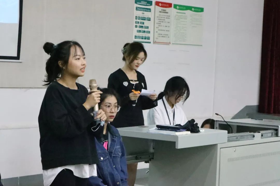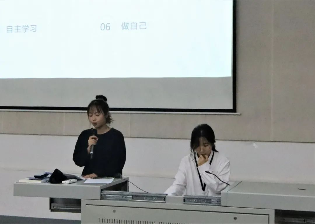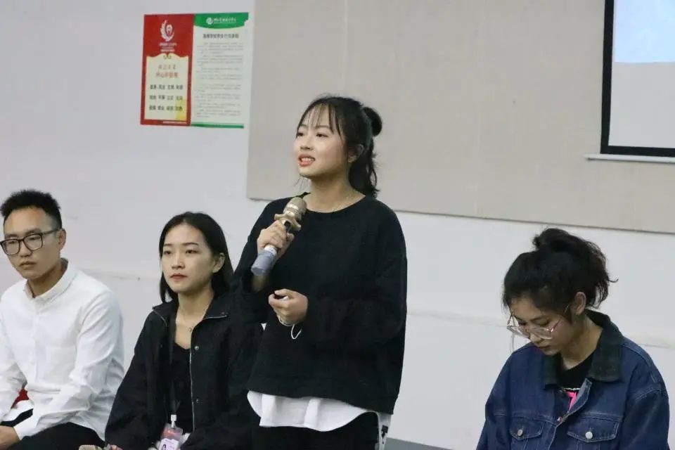 活动第五项:19、20级学长学姐上台进行分享学习经验。分别为:人文教育学院周可柔同学,动画传媒学院马妍同学。